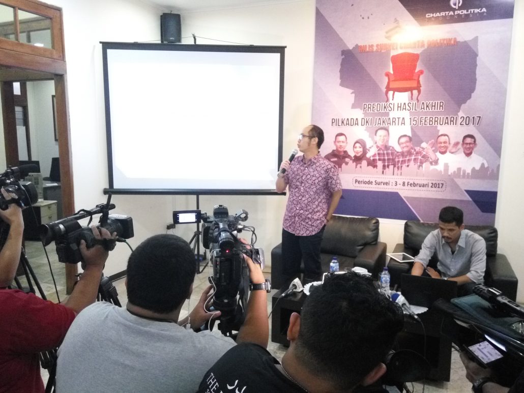 Jakarta-based pollster Charta Politika, which conducted the survey from Feb. 3 to Feb. 8, shows that 39 percent of respondents said they would vote for Ahok-Djarot, while 31.9 percent favored Anies Baswedan-Sandiaga Uno.