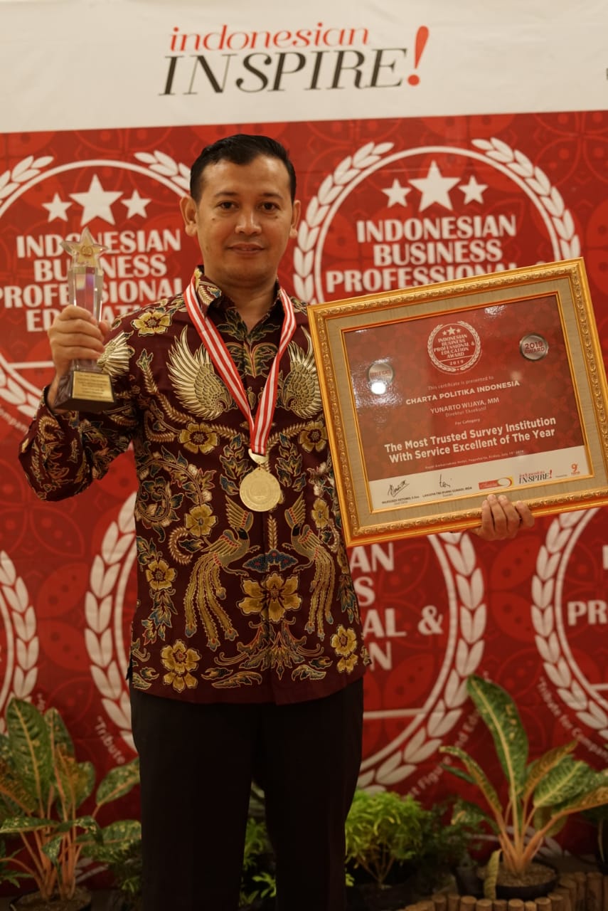 Yogyakarta, 19 juli 2019 – Kegigihan dalam memberikan pendidikan politik kepada masyarakat yang bermanfaat bagi kemajuan serta kesejahteraan bangsa di Indonesia, berhasil membawa Charta Politika Indonesia meraih penghargaan “Indonesian Business, Professional and Education Award 2019” kategori “The Most Trusted Survey Institution With Service Excellent of The Year”.
