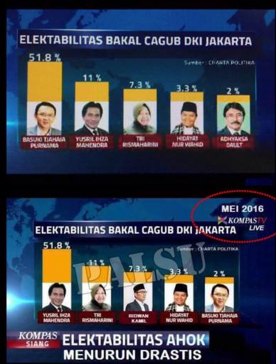 12.Hasil Survei Charta Pra Pileg 2014 & Pilkada Jakarta Maret 2016, juga pernah diedit demi kepentingan pihak tertentu.
