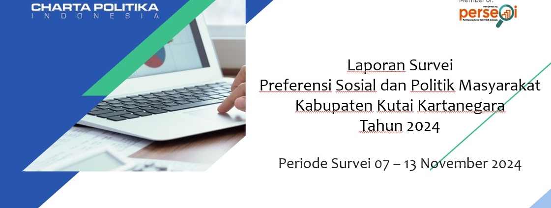 /0 Comments/in Rilis SurveiCharta Politika Indonesia adalah lembaga penelitian kebijakan dan opini publik, menyelenggarakan survei di Kabupaten Kutai Kartanegara pada tanggal 07 – 13 November 2024, melalui wawancara tatap muka secara langsung dengan menggunakan kuesioner terstruktur. Jumlah sampel sebanyak 1200 responden, yang tersebar di 20 Kecamatan di Kabupaten Kutai Kartanegara. Metodologi yang digunakan adalah metode acak bertingkat (multistage random sampling) dengan margin of error ± (2.83%) pada tingkat kepercayaan 95%.