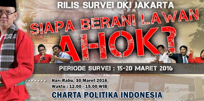 Rilis Survei Menuju Pilkada DKI Jakarta 2017 dengan judul “Siapa Berani Lawan Ahok”