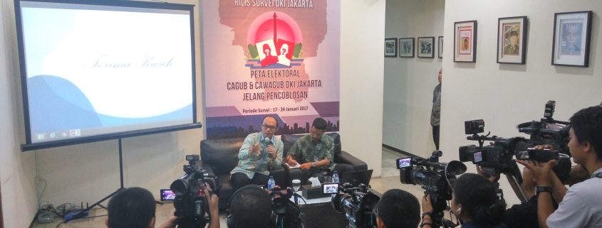 Pertanyaan yang diajukan pada responden yakni “Apabila Pilkada DKI Jakarta dilakukan hari ini dan diikuti tiga pasang calon, pasangan mana yang Anda pilih?” Hasilnya pasangan nomor urut 2 Ahok-Djarot unggul dengan elektabilitas 39 persen.